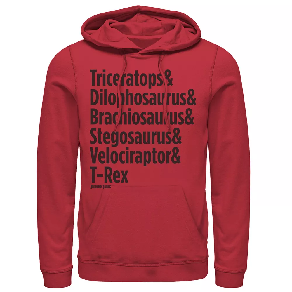 He’ll love wearing this Men’s Jurassic Park Dinosaur Name Types Graphic Pullover Graphic Hoodie.