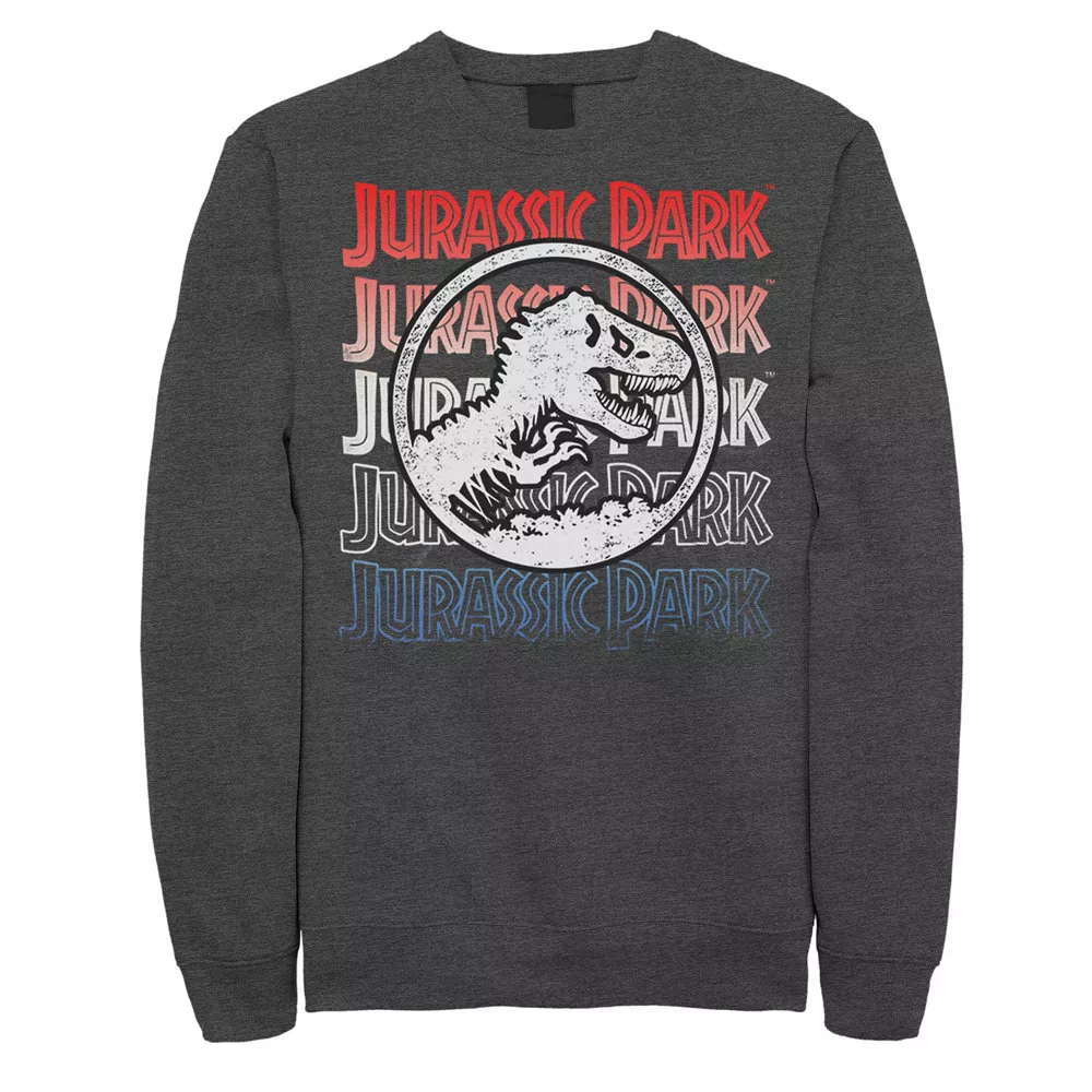 He’ll love wearing this Men’s Jurassic Park Red White And Blue Title Graphic Graphic Sweatshirt.