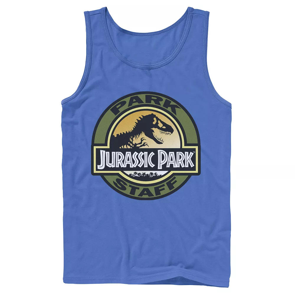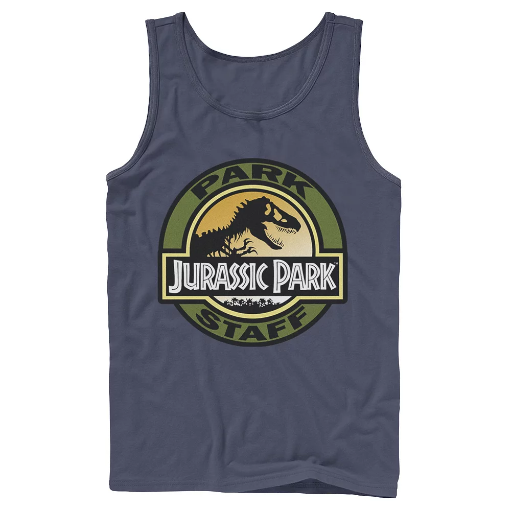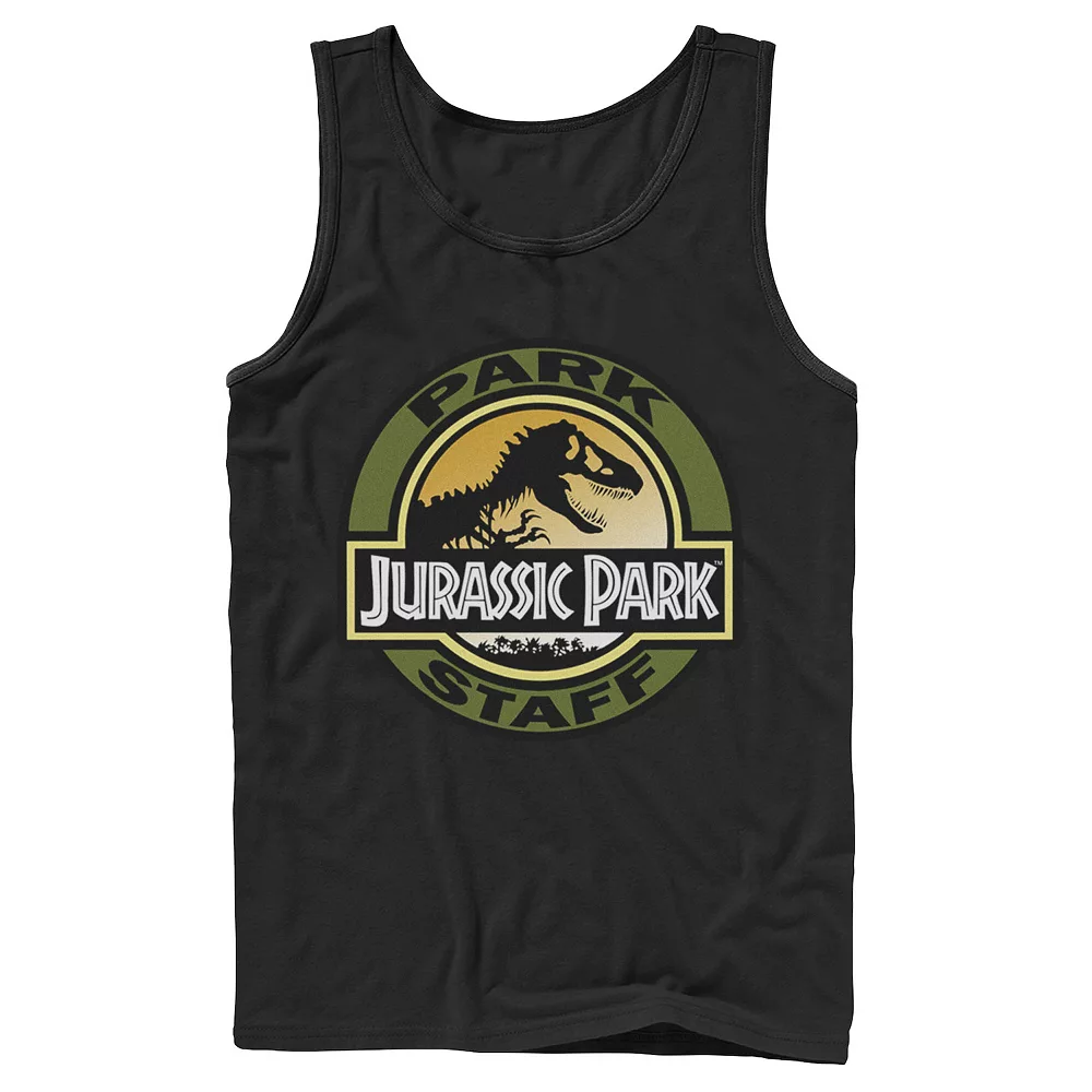 He’ll love wearing this Men’s Jurassic Park Staff Icon T-Rex Skeleton Tank Top.