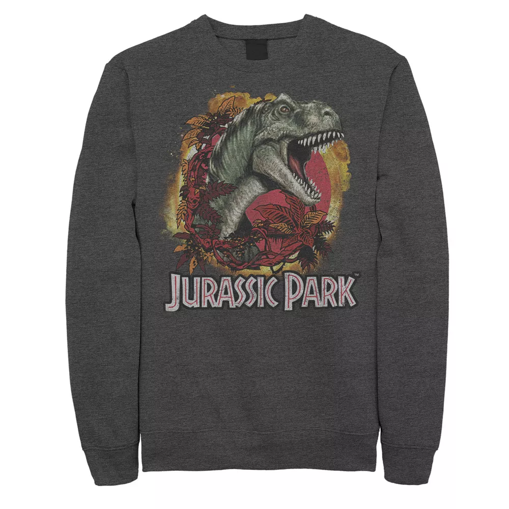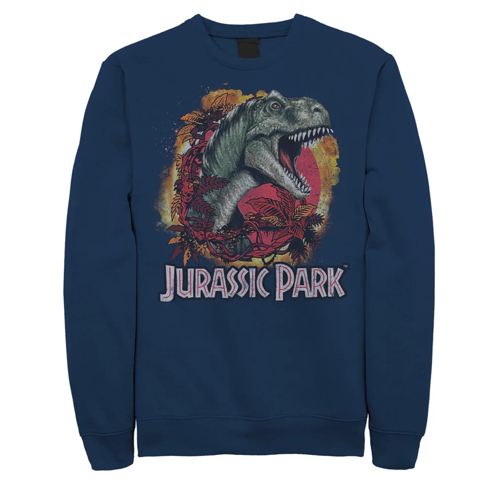 He’ll love wearing this Men’s Jurassic Park T-Rex Explosion Tropical Logo Graphic Fleece Pullover.