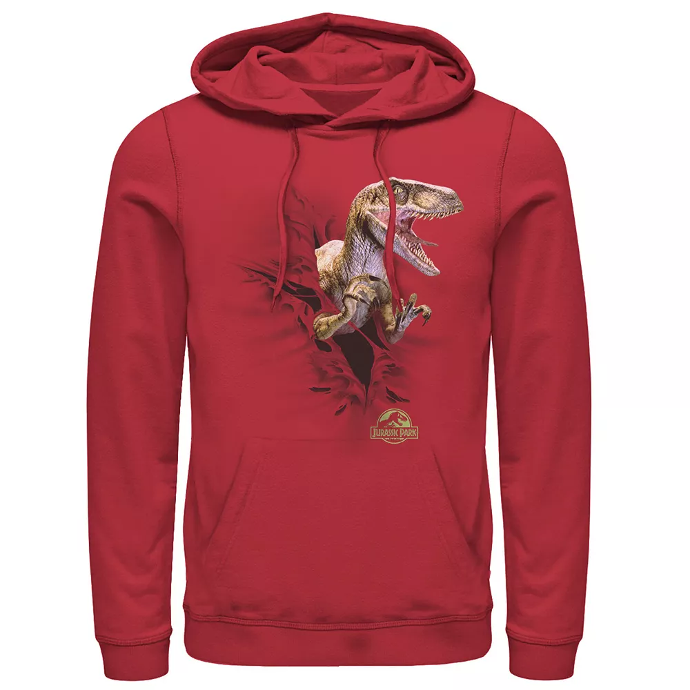 He’ll love wearing this Men’s Jurassic Park Velociraptor tears through graphic pullover hoodie.