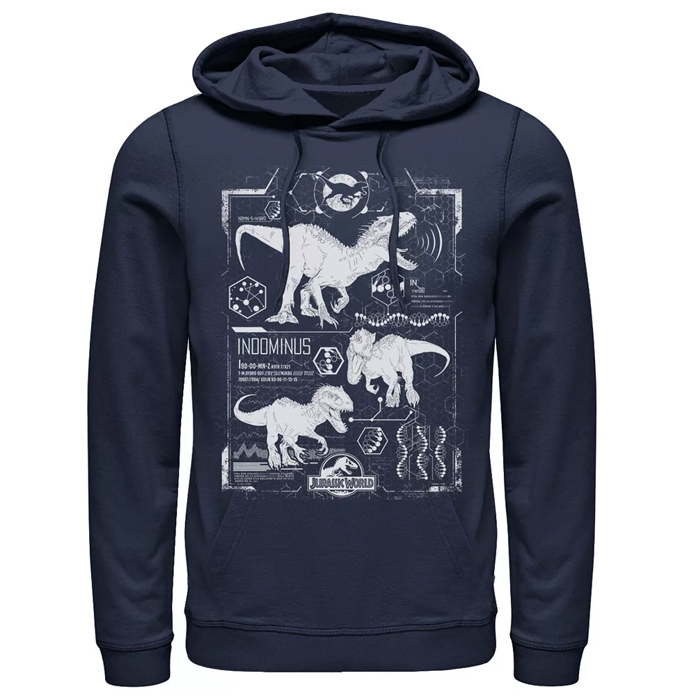 He’ll love wearing this Men’s Jurassic World Indominus Rex Green Schematic Graphic Pullover Graphic Hoodie.