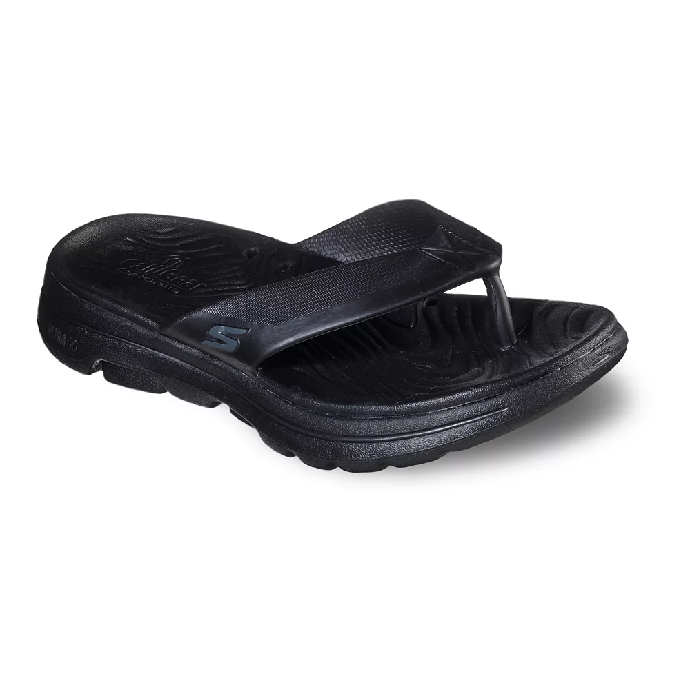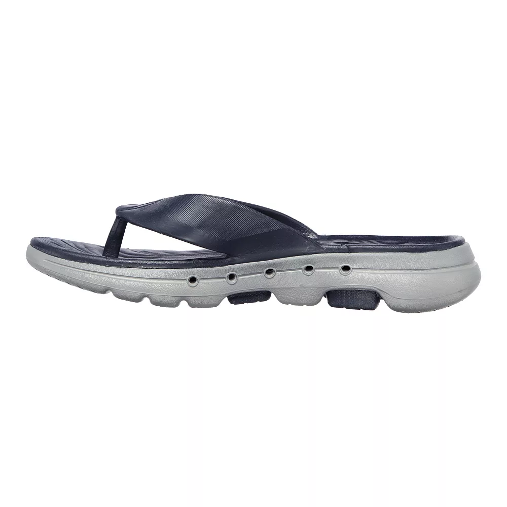 Sculpted smooth flexible comfort comes with advanced walking cushion in these Skechers Foamies GOwalk 5 Cabana sandals.