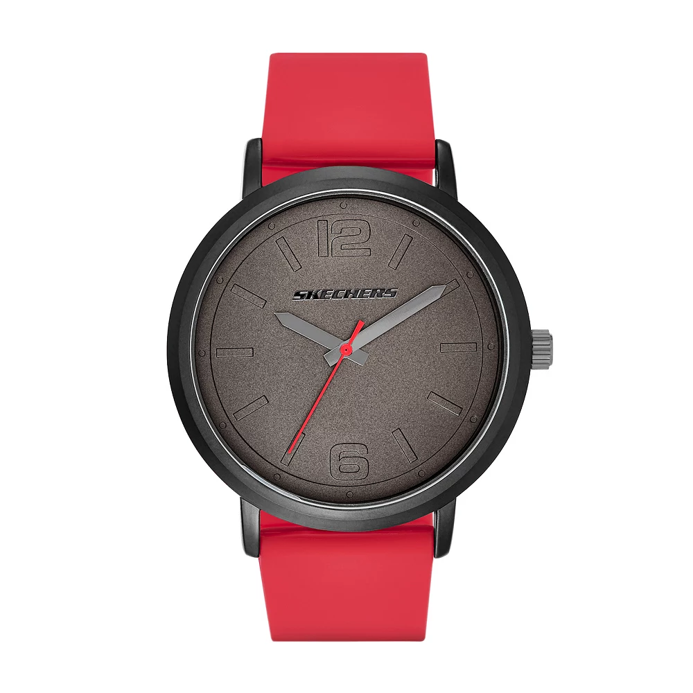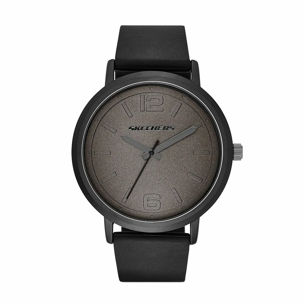 The Skechers Ardmore watch combines fashion and functionality. This sporty watch features a smooth, brushed black metal case and silicone strap with a 3 hand analog display.