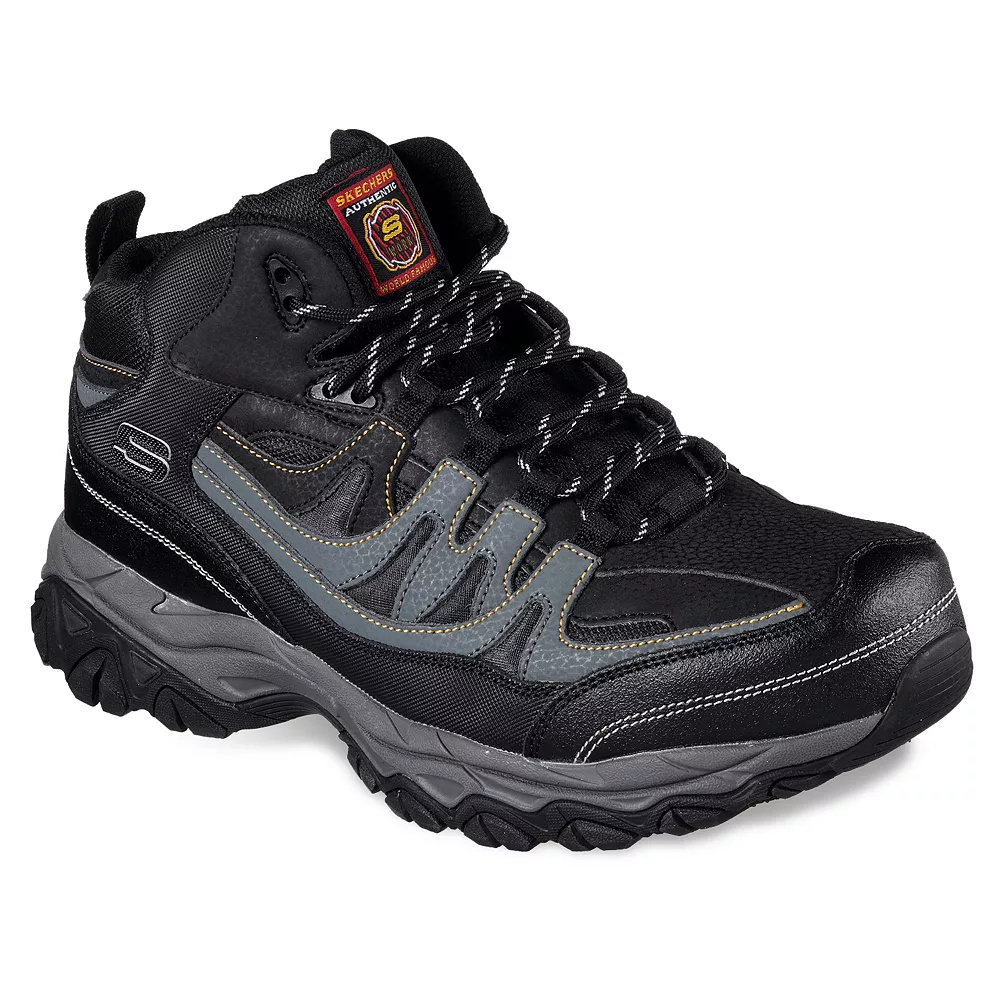 Stay safe and comfortable all day in sporty style with these Skechers Work Relaxed Fit Holdredge Rebem steel toe boots.